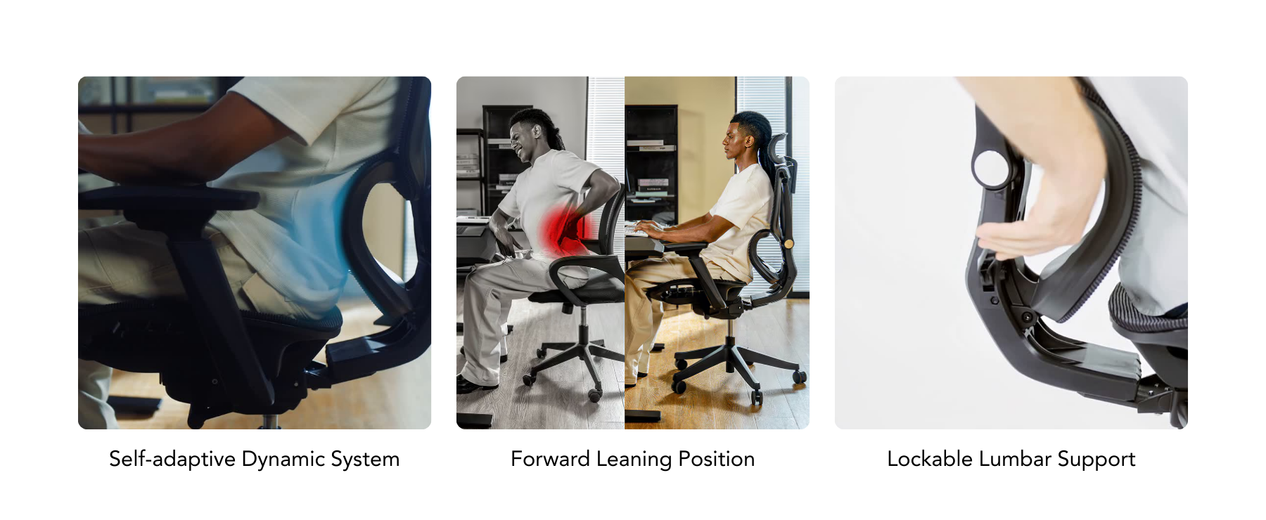 When you're leaning in to type or focus on a task, the chair cushions your sacrum area, reducing fatigue caused by forward-leaning posture.