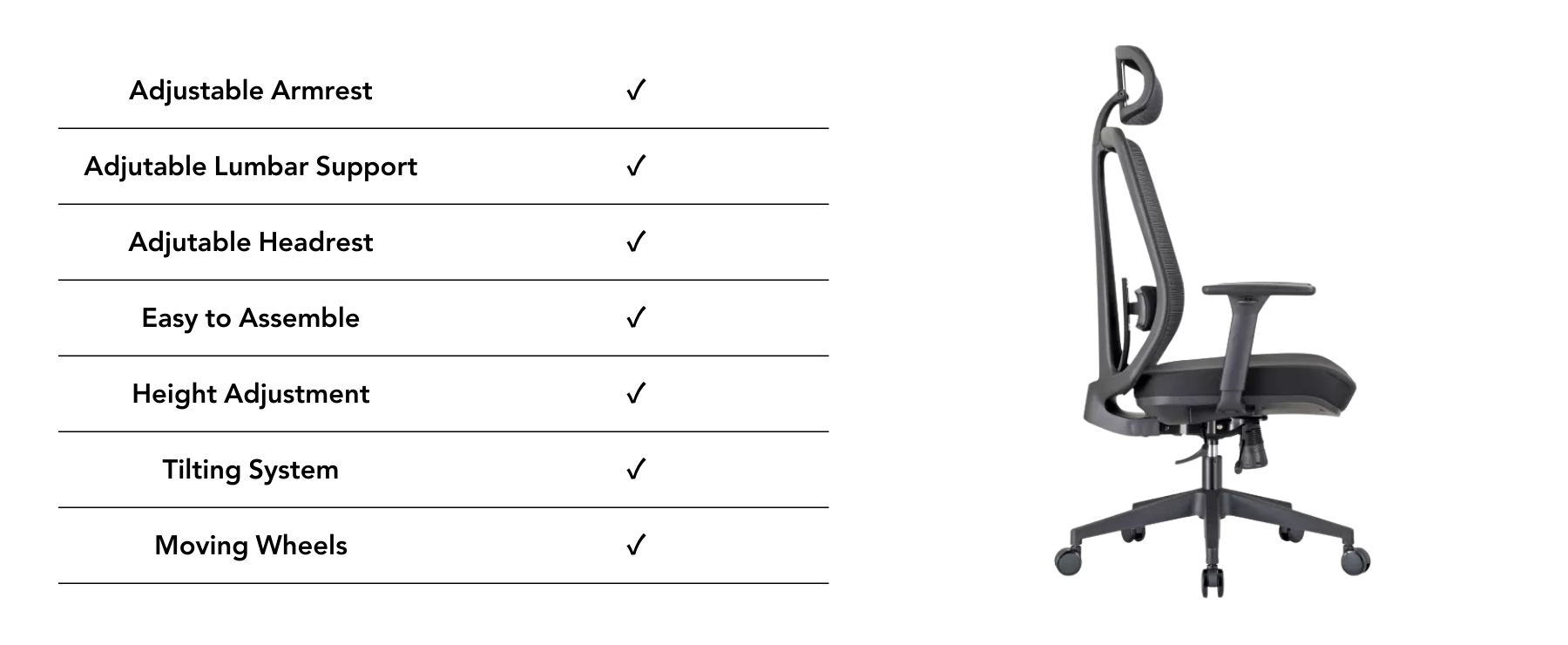 This ergonomic office chair features a height-adjustable headrest that adapts to your height and posture, relieving neck tension and supporting your upper back during long work sessions.