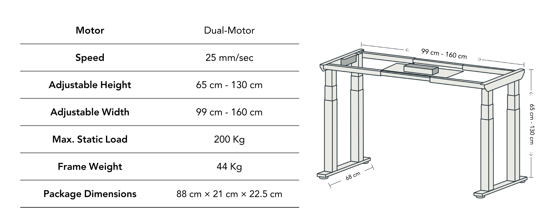 TARTEEB Plus Standing Desk Specifications